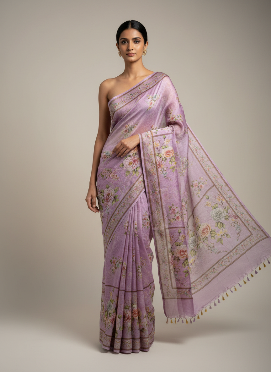 Lavender Pure printed organza saree