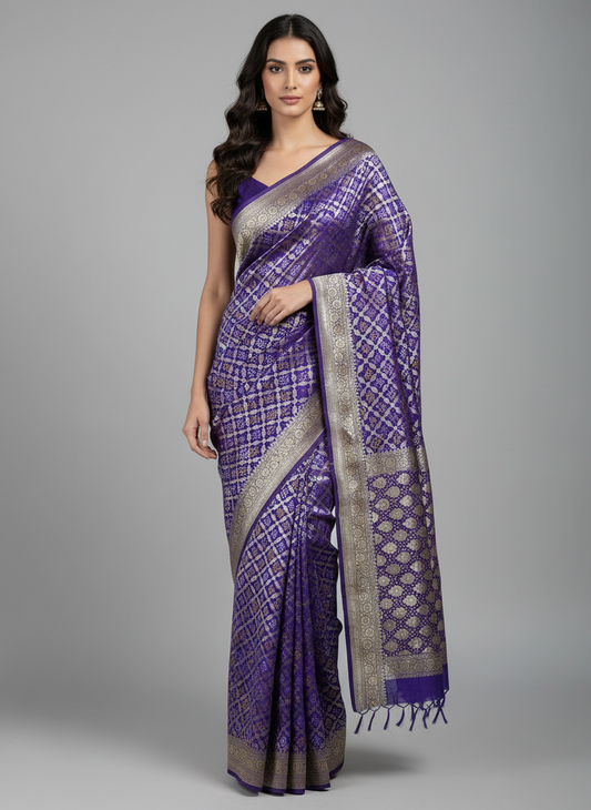 BLUE-VIOLET SHADED GEORGETTE WITH A BANDHINI PRINT saree