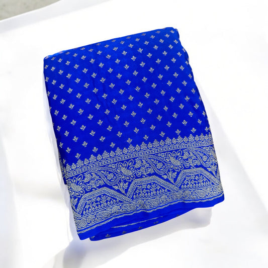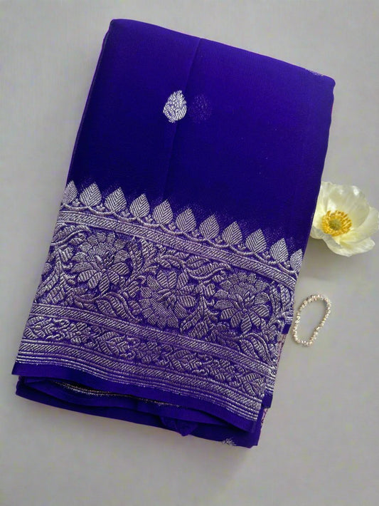 Royal blue pure crepe silk saree