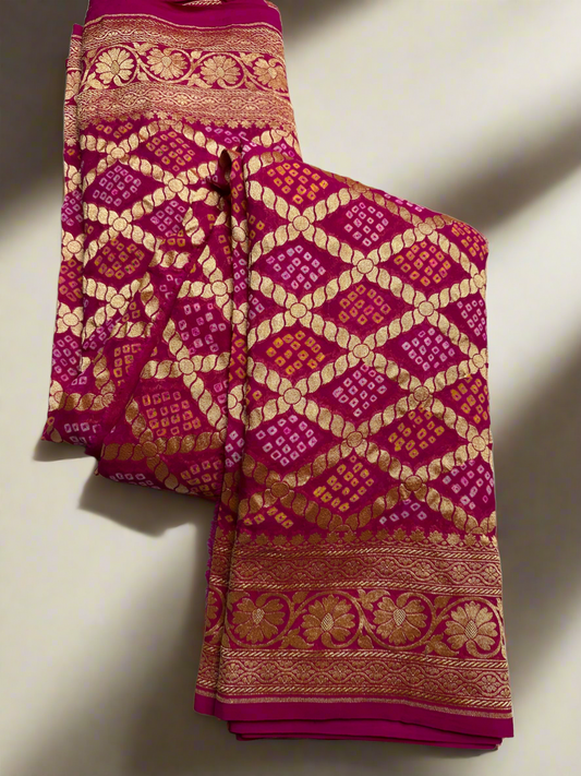 RANI PINK SHADED GEORGETTE WITH A BANDHINI PRINT