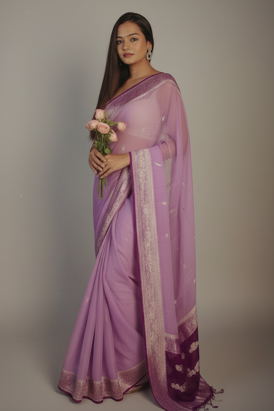 Lavender - purple pure khaddi chiffon saree
