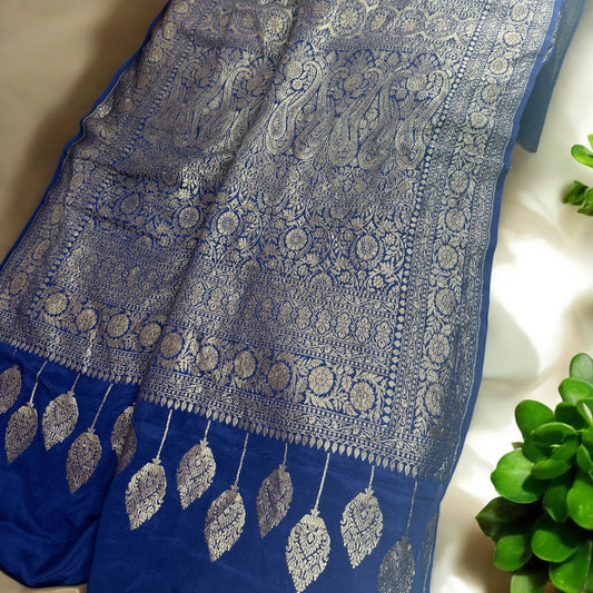 Classic blue pure crepe silk saree