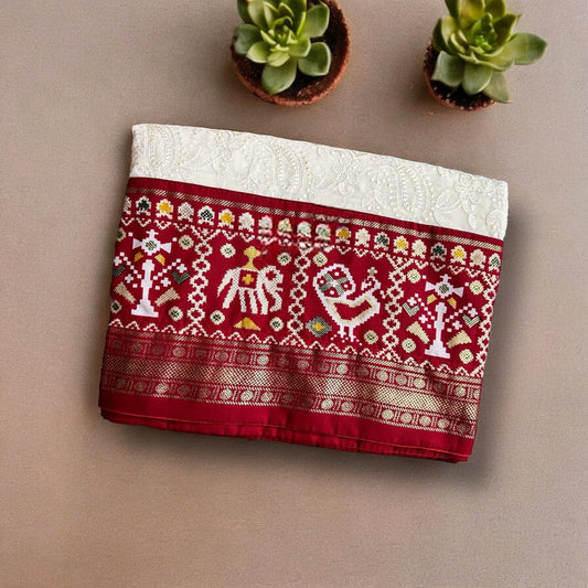 White-red chikankari X patola -Georgette saree