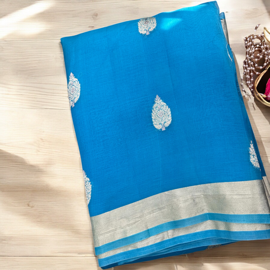 Blue Pure organza silk saree