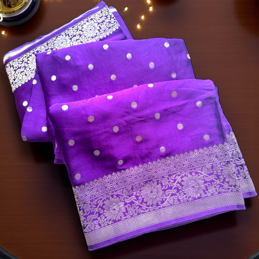 PURPLE CHIFFON GEORGETTE WITH SILVER BUTTA SAREE