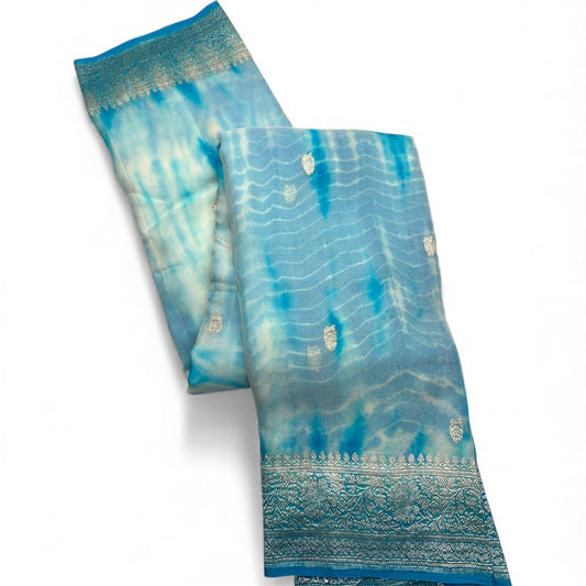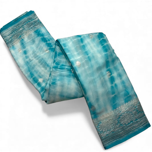 LIGHT BLUE SHADED CHIFFON GEORGETTE WITH SILVER ZARI