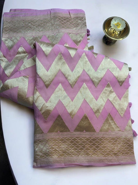 PINK SILVER ZARI PURE KHADDI GEORGETTE SAREE